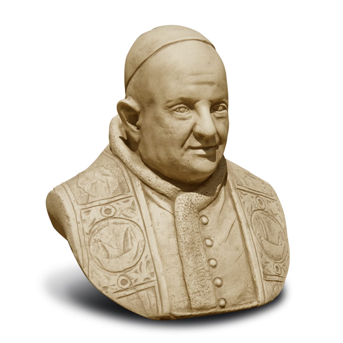 Busto di Papa Giovanni XXIII, il Papa Buono, in cemento e granulato di marmo.