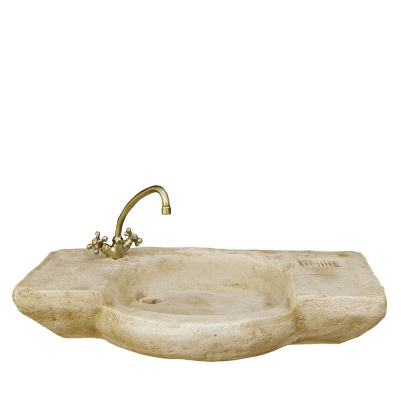 Lavandino da giardino in cemento e granulato di marmo. Disponibile bianco o nei colori anticato grigio e nocciola