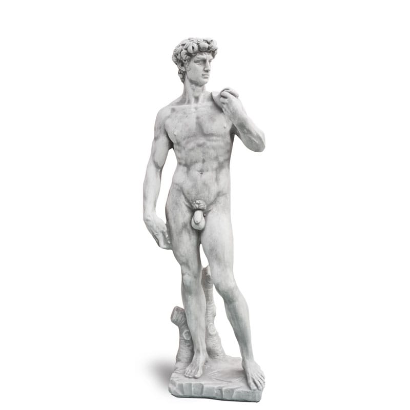 Statua per giardino in cemento e granulato di marmo. Realizzata in cemento bianco, nelle finiture liscio oppure anticato grigio o nocciola.