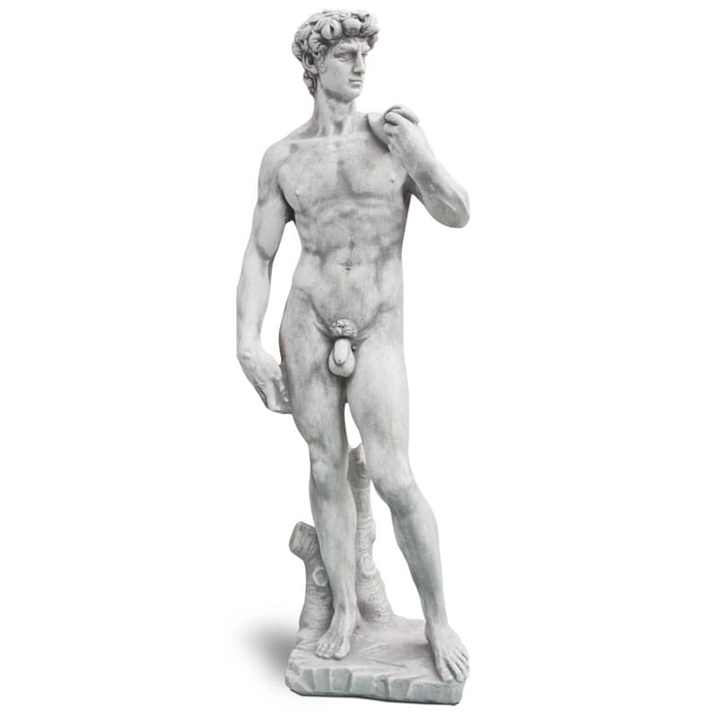 Statua per giardino in cemento e granulato di marmo. Realizzata in cemento bianco, nelle finiture liscio oppure anticato grigio o nocciola.