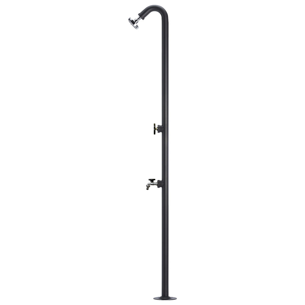Colonna con due rubinetti con maniglia industriale verniciata in tinta con la doccia.