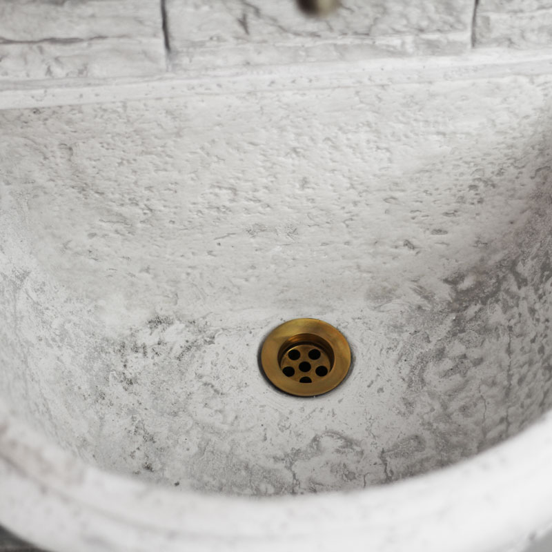 Fontana a muro in cemento e granulato di marmo. Realizzata nella finitura anticata.