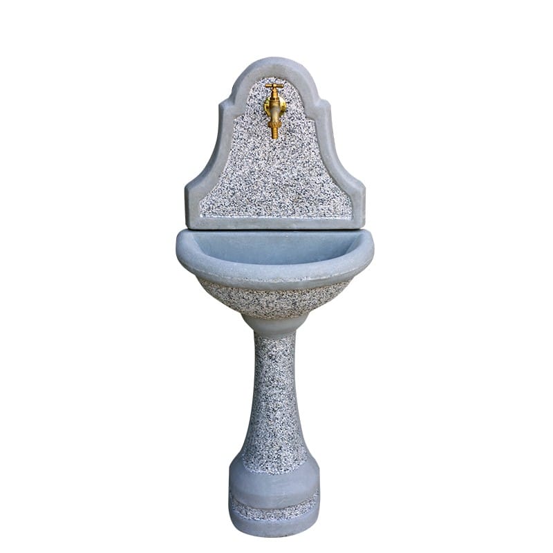 Fontana a muro in cemento e granulato di marmo. Realizzata con finitura martellinata.