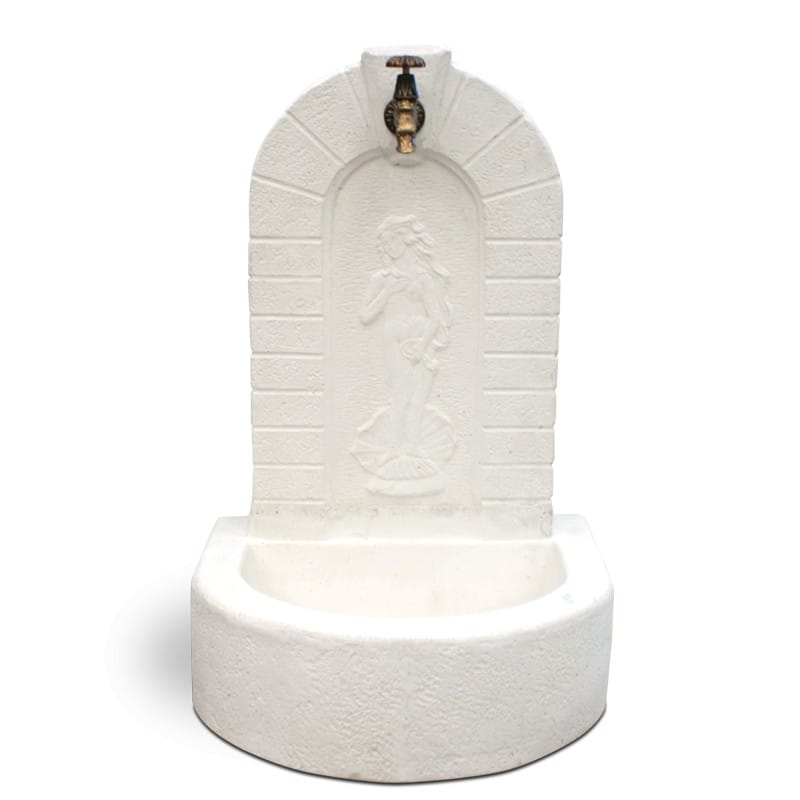 Fontana vedovella in cemento e granulato di marmo, realizzata nella finitura anticato nocciola o grigio.