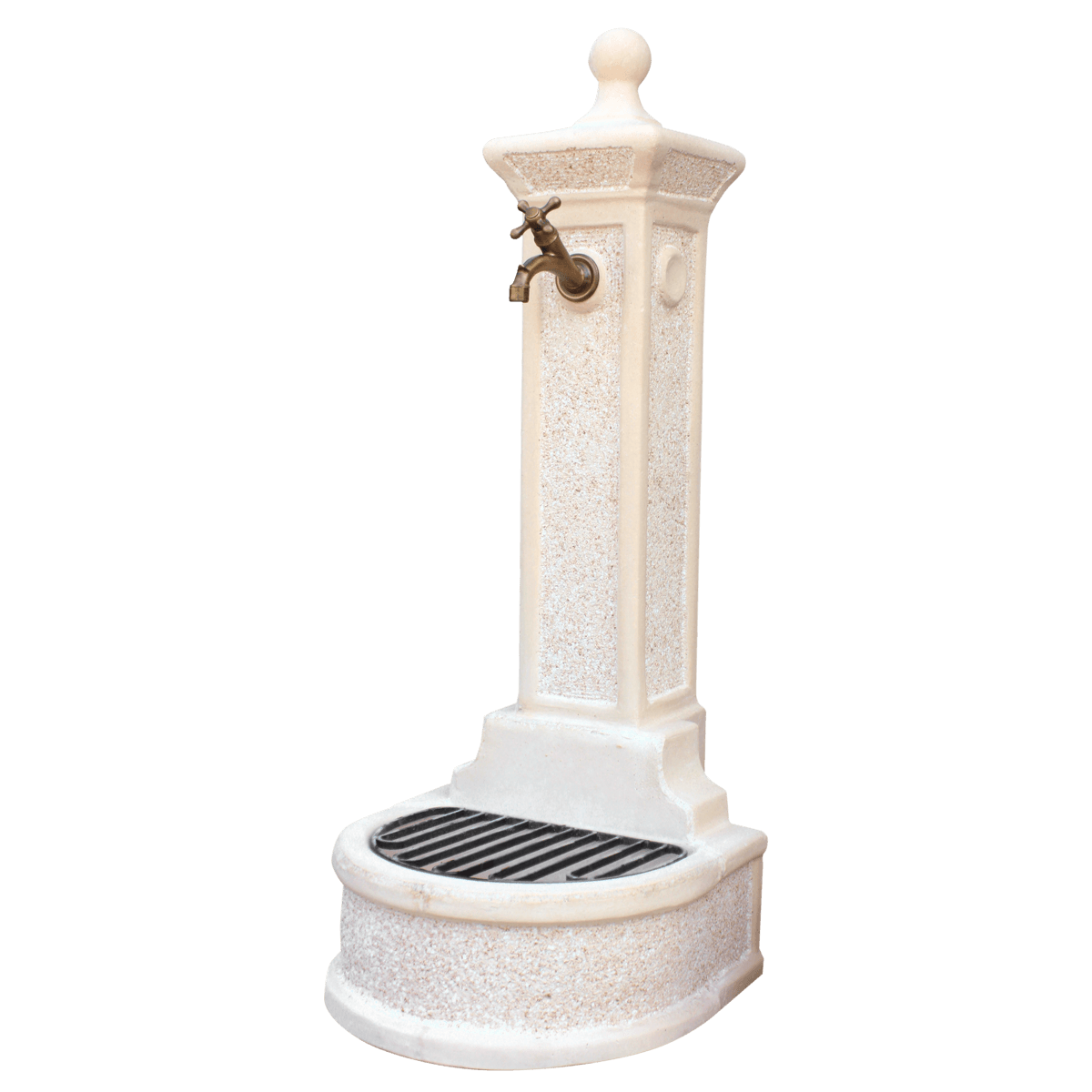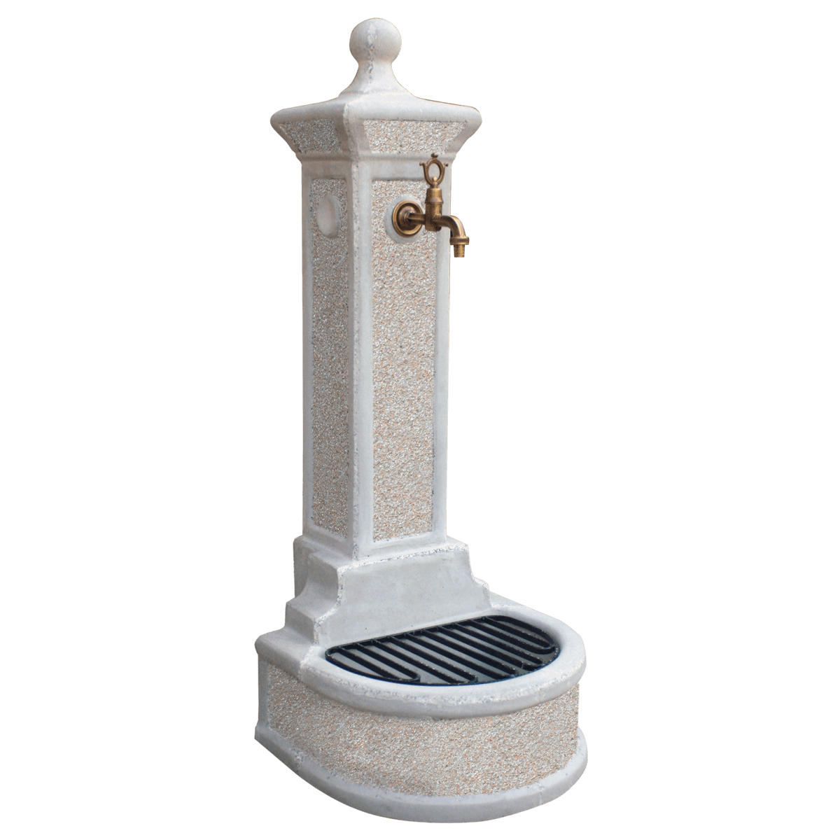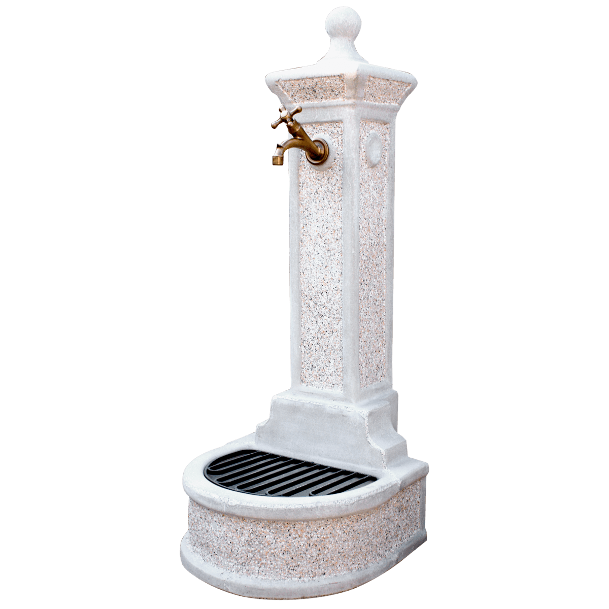 Fontana vedovella in cemento e granulato di marmo. Realizzata nella finitura martellinato.