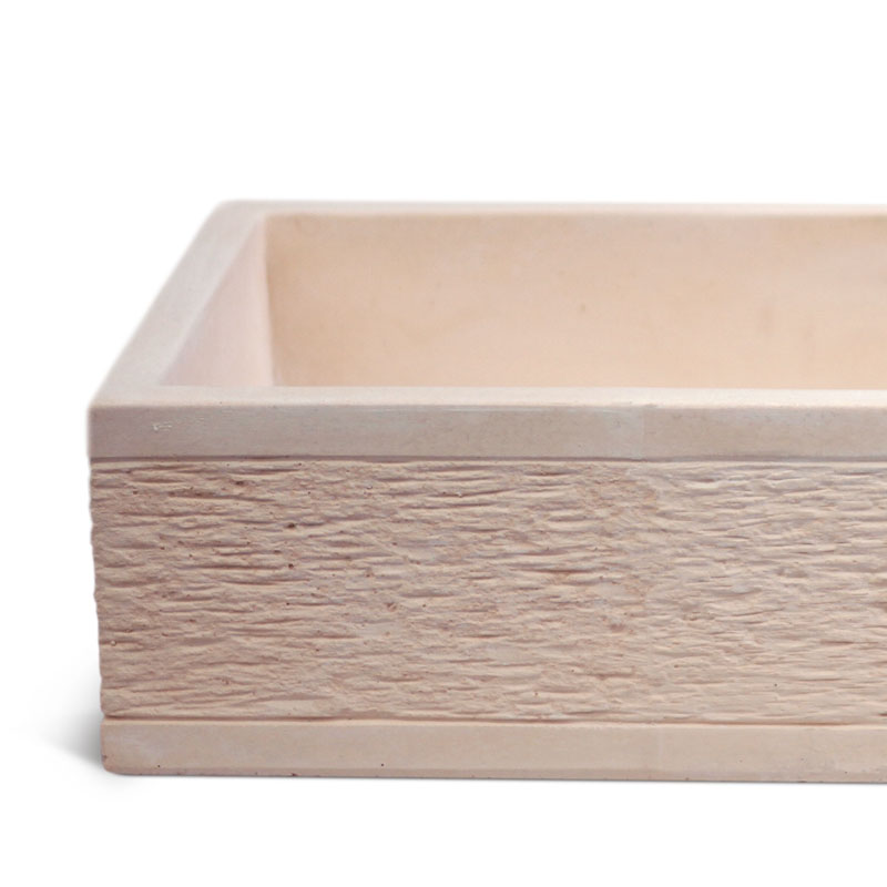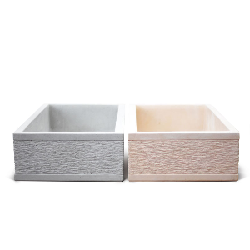 Disponibile nei colori grigio e rosa antico. Questi colori sono ottenuti dalla combinazione di cemento, polveri e granulati di marmo, senza ulteriori additivi. Questo garantisce che il colore del lavello rimanga pressochĂŠ inalterato nel tempo.