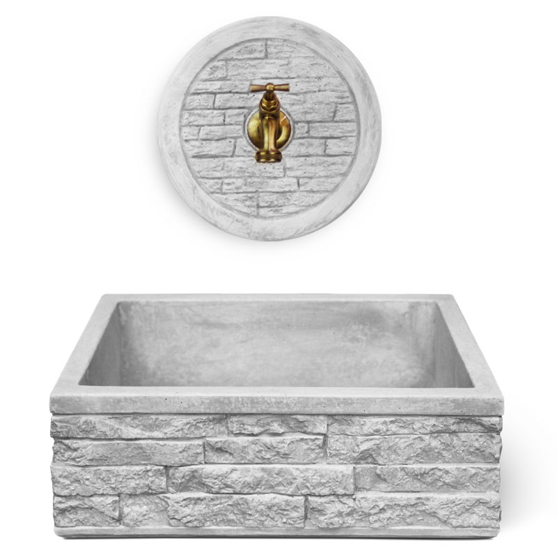 Lavello per esterno con rosone. Disponibile nei colori bianco, anticato grigio e anticato nocciola.