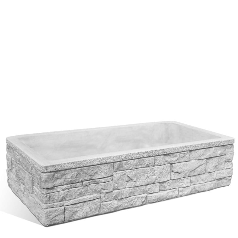 Lavello da giardino in cemento e granulato di marmo. Disponibile bianco o nei colori anticato grigio e nocciola.