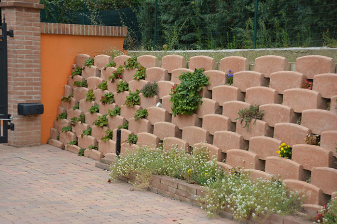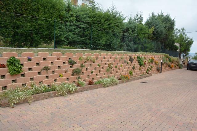 La sua forma permette al terreno di essere piantumato, scegliendo una vegetazione che non abbia un apparato radicale molto invasivo. Viene posato a secco e si adatta senza problemi, alle pendenze ed alle ondulazioni del terreno.