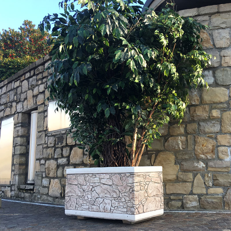 Vaso rettangolare anticato in cemento e granulato di marmo.