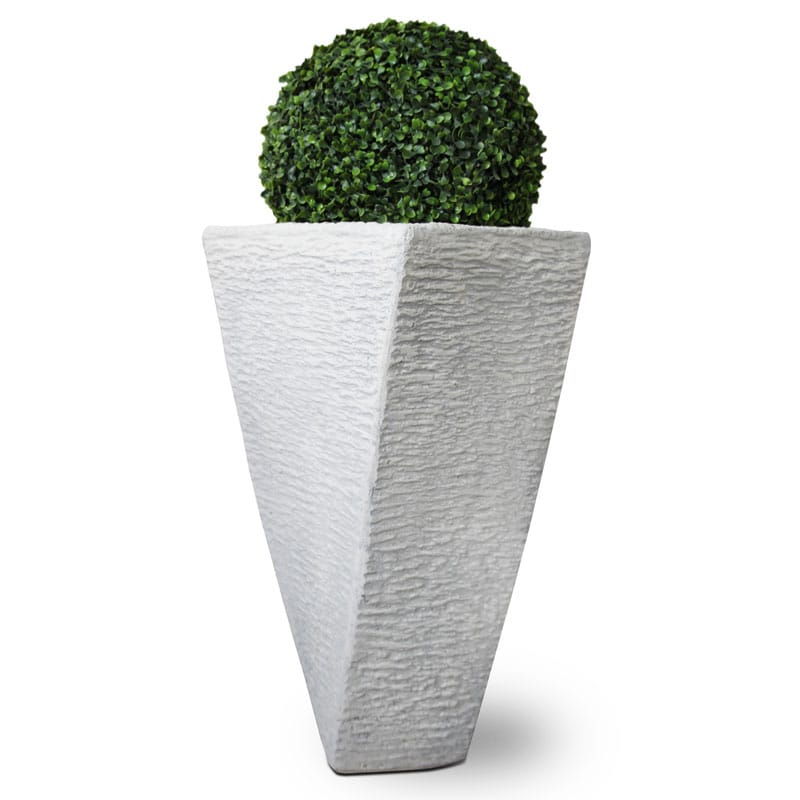 Vaso ornamentale in cemento e granulato di marmo. Realizzabile nei colori bianco liscio oppure anticato grigio o nocciola.