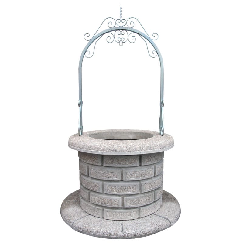 Pozzo in cemento grigio e granulato di marmo, realizzato nella finitura martellinato.