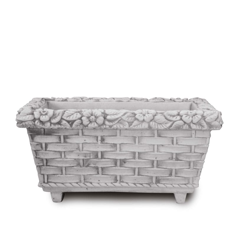 Fioriera ornamentale in cemento e granulato di marmo. Realizzabile nei colori bianco liscio oppure grigio o nocciola.