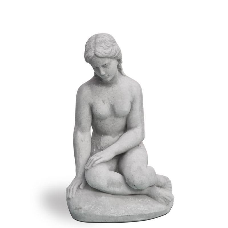 Statua per giardino in cemento e granulato di marmo. Realizzata in cemento bianco, nelle finiture liscio oppure anticato grigio o nocciola.
