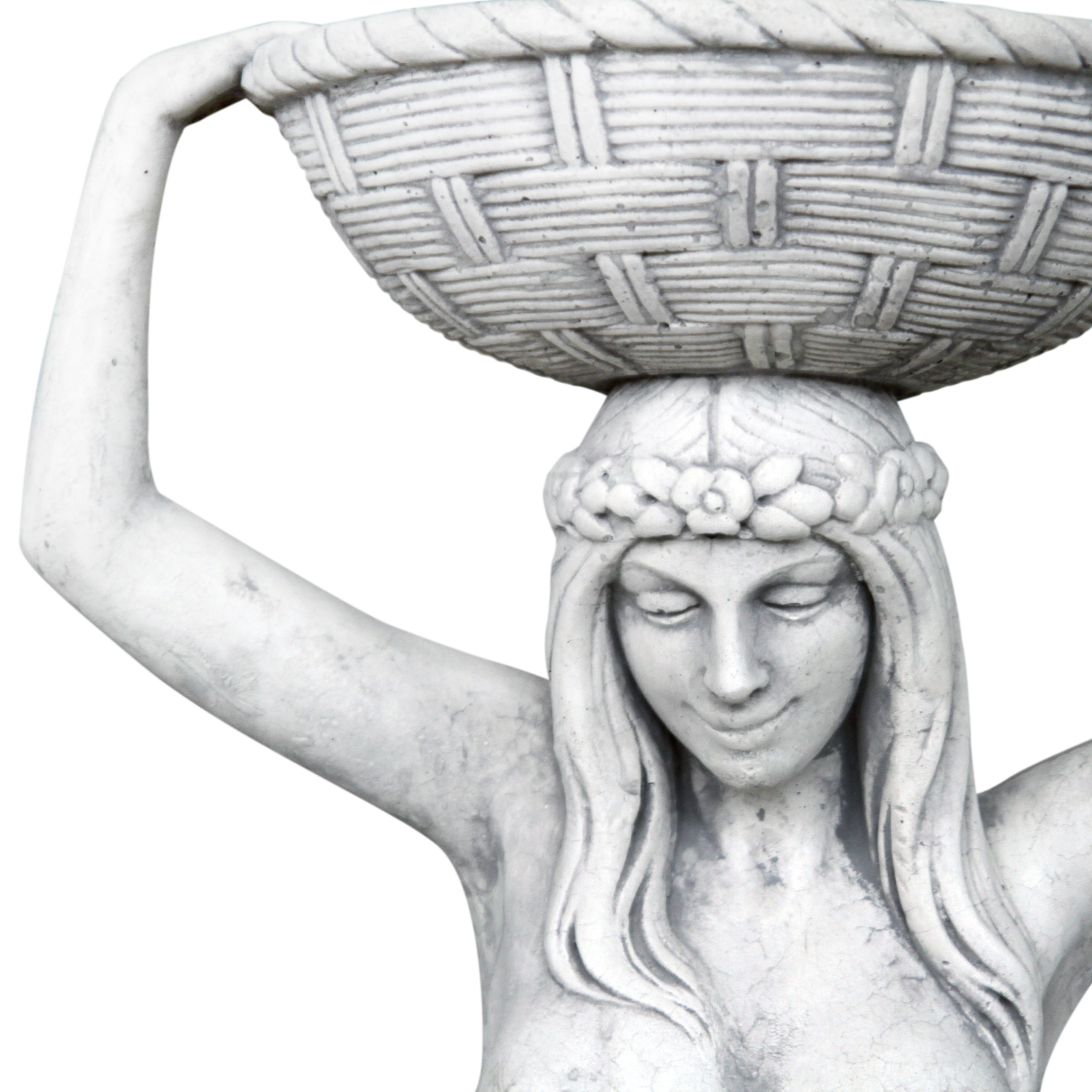 Statua per giardino in cemento e granulato di marmo. Realizzata in cemento bianco, nelle finiture liscio oppure anticato grigio o nocciola.