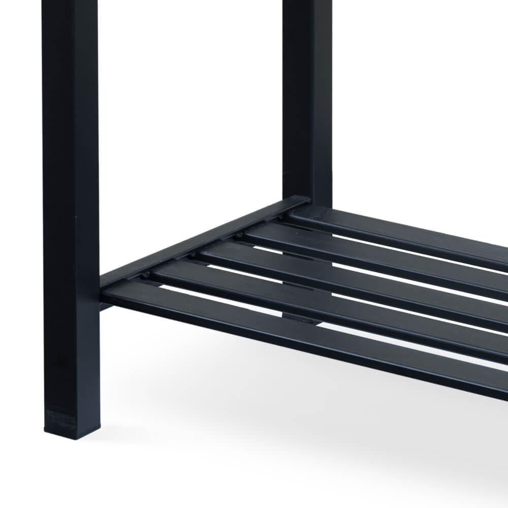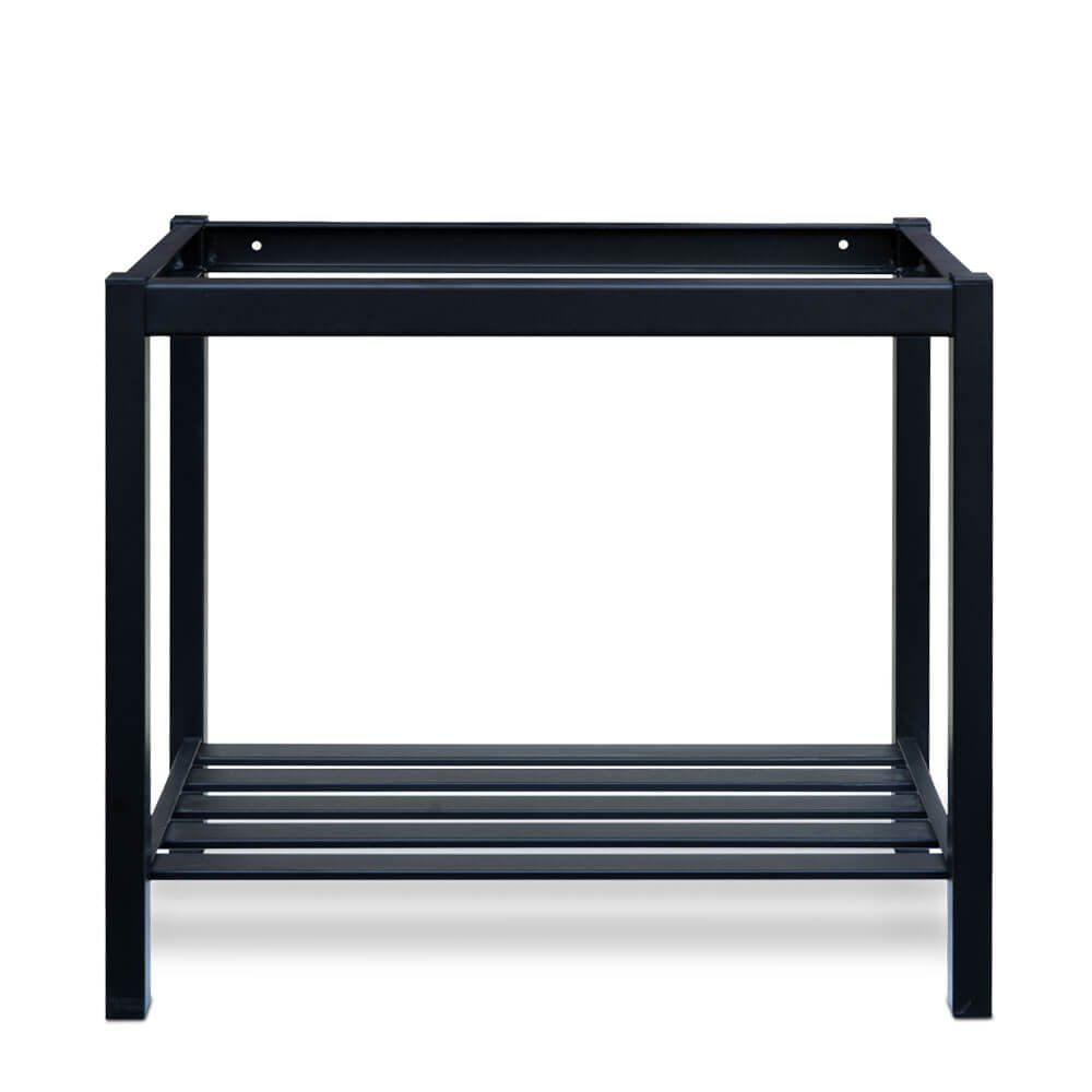 La struttura è completata da un ripiano inferiore in tubolari, funzionale ed elegante, ideale per riporre accessori o elementi di servizio.