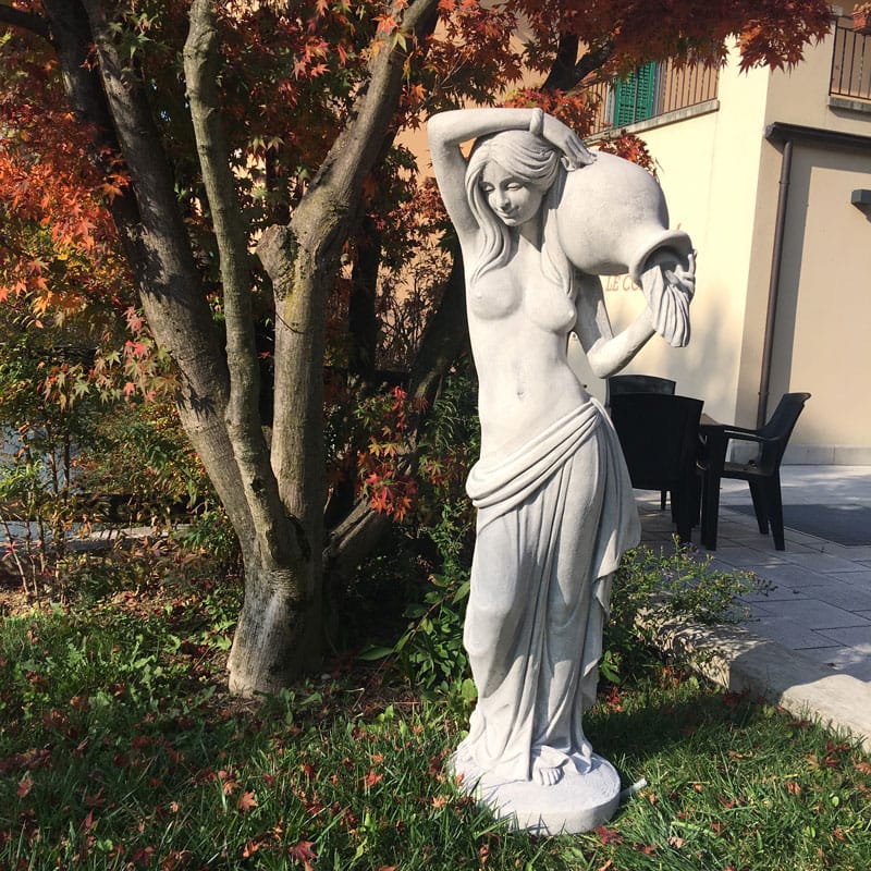 Statua per giardino in cemento e granulato di marmo. Realizzata in cemento bianco, nelle finiture liscio oppure anticato grigio o nocciola.