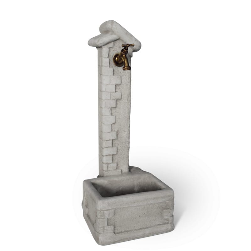 Fontana vedovella rustica in cemento, disponibile nel colore bianco oppure con anticatura nei colori grigio o nocciola.