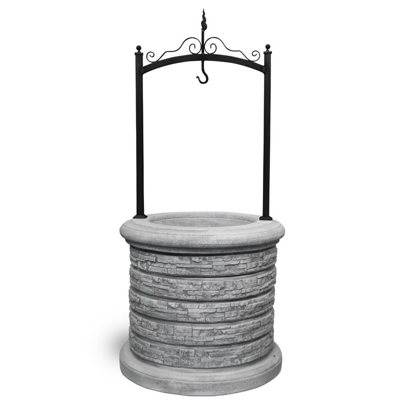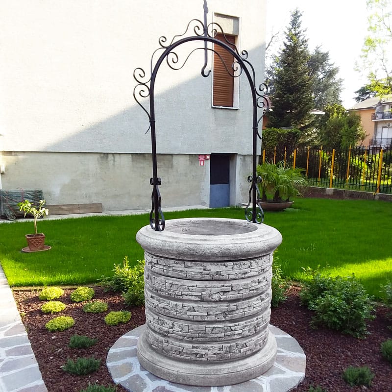 Pozzo decorativo da giardino, in cemento e granulato di marmo.